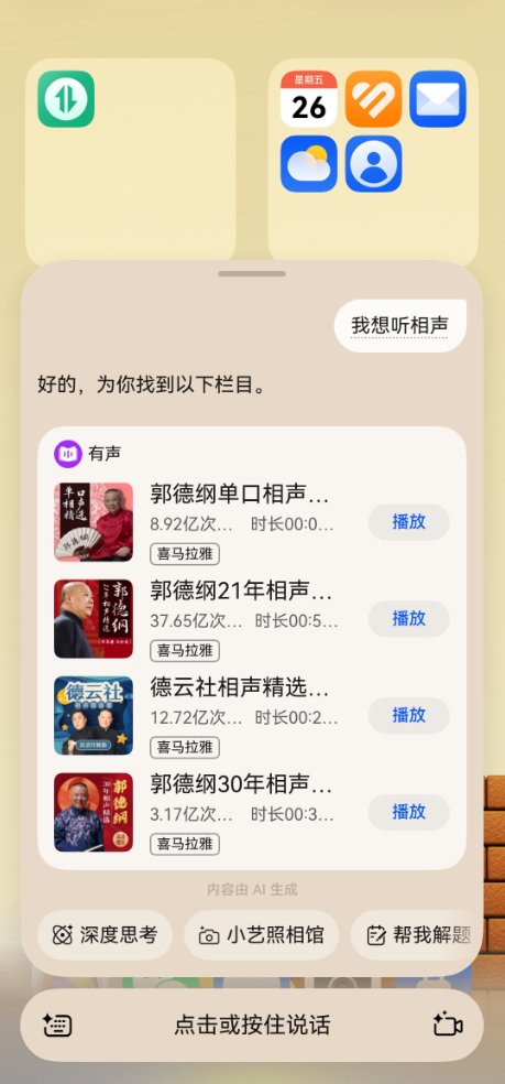 在2025年,鸿蒙并没有选择把AI打造成炫目的舞台中心,而是让它逐渐退居幕后,作为一种“提前一步”的前置性服务为用户提供安心。鸿蒙用户熟悉的“小艺”,从语音助手向智能体演进,正是这一思路的体现。
