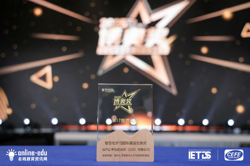 在大会备受瞩目的博奥奖颁奖典礼上,龙环汇丰信息咨询(北京)有限公司凭借“数智化人才培养体系建设项目”从416家企业、582份参赛案例中脱颖而出,与江淮汽车、西南证券、红星美凯龙等知名企业一起,荣获“智慧化学习团队建设奖”。这一奖项的获得,不仅是对龙环汇丰创新实践的肯定,更是对大会主题“育见AI”在企业层面成功落地的生动诠释,彰显了数智化人才培养模式的巨大价值与广阔前景。