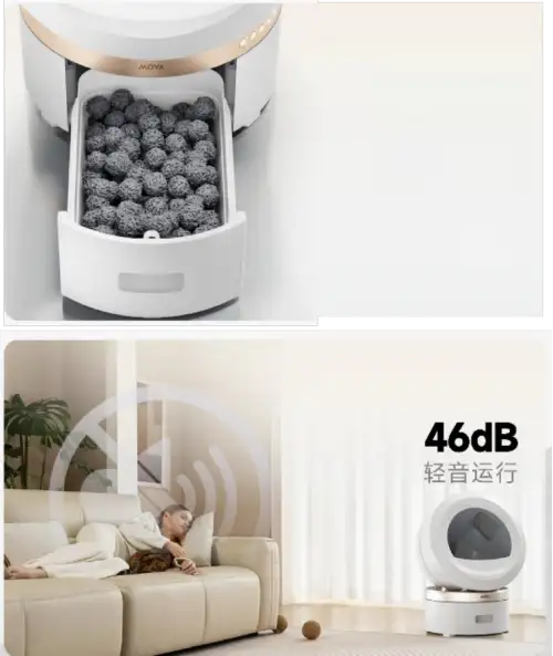 MOVA LR10Prime 智能猫砂盆让“智能”二字围绕长期养猫过程中最真实的痛点展开。6L 的铺砂容量与11L的集便仓设计,让日常维护周期被拉长至 15 天;46dB 的轻音运行,使设备真正融入家庭环境;空气净化系统叠加自动喷雾的双重除臭方案,则精准破解了被长期忽视的“异味”难题。