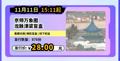 11月11日9:00,“万年稻源数字徽章”将正式上市,作为拥有1.2万年稻作文明的数字珍藏,每一份都是不可复制的文化资产。用户可享受随机盲盒、实物奖励和景区门票权益,该徽章限量发行3000份;在15:11,《京师万象图》压轴登场,该藏品以清代北京中轴线为时空脉络,融合《京师生春诗意图》的市井烟火与《乾隆南巡图》的皇家气象,围绕北京中轴线上的15处遗产点,构建数十个紧密衔接的NPC沉浸式体验点,多维度呈现北京中轴线历史风貌与文化全景。借助数字测绘、三维复刻与动态交互叙事技术,该藏品将七百多年的中轴线历史凝练为一幅全长78米的动态数字艺术长卷,在高精准度定位系统技术支持下,用户只需通过手机连接,一键即可“跨越时空”步入画中世界,化身不同角色,开启一段穿越百年的文化旅程。