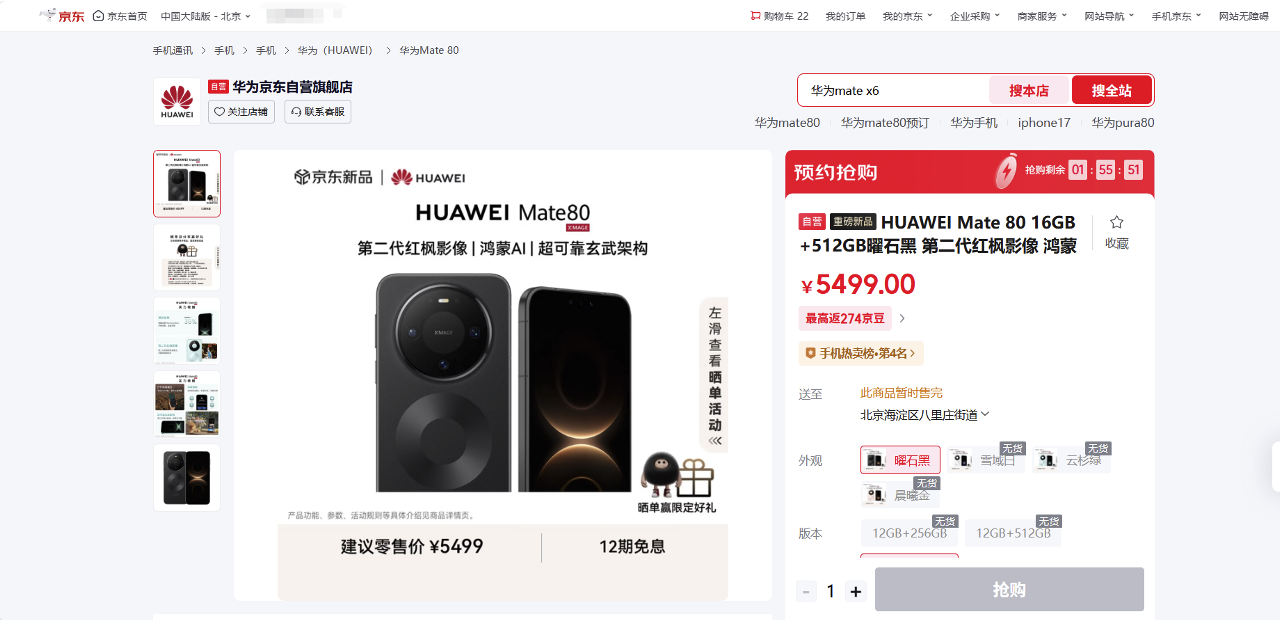 11月28日华为 Mate 80系列开售 北京、上海等多地京东用户已收到新机