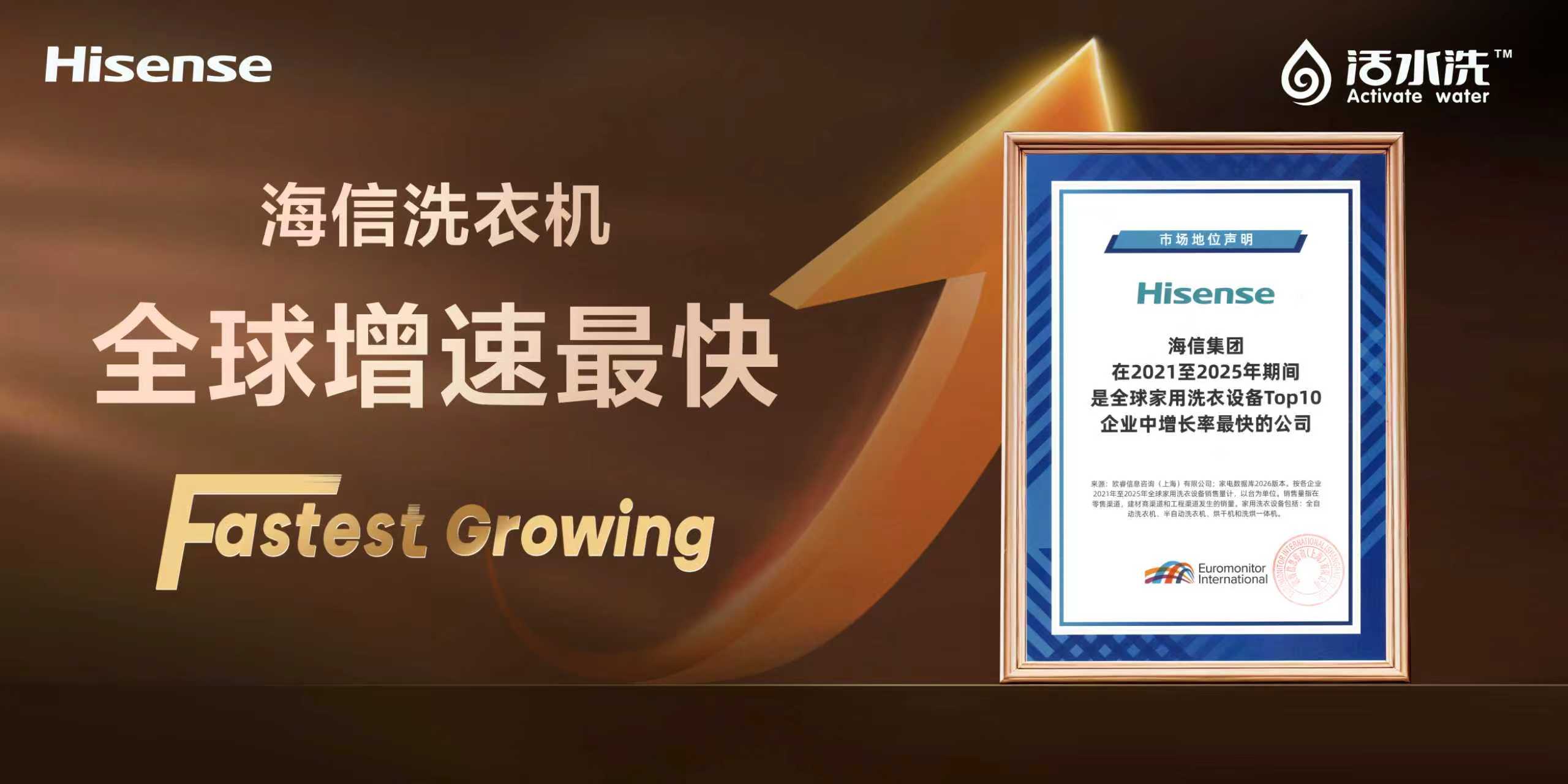 在全球洗衣机市场竞争日趋激烈的背景下,海信洗衣机逆势而上,跑出了令行业瞩目的“加速度”。在海外,海信洗衣机已销往全球140多个国家和地区。2025年6月,其在英国的市场份额突破11%,跃居行业第一;在克罗地亚、塞尔维亚等国份额超过30%,稳居当地市场前三。在南非,海信洗衣机实现从行业追赶者到量额双第一的跨越式增长。在全球范围内,海信洗衣机获欧睿国际认证为近五年全球TOP10中增速最快(2021-2025)。