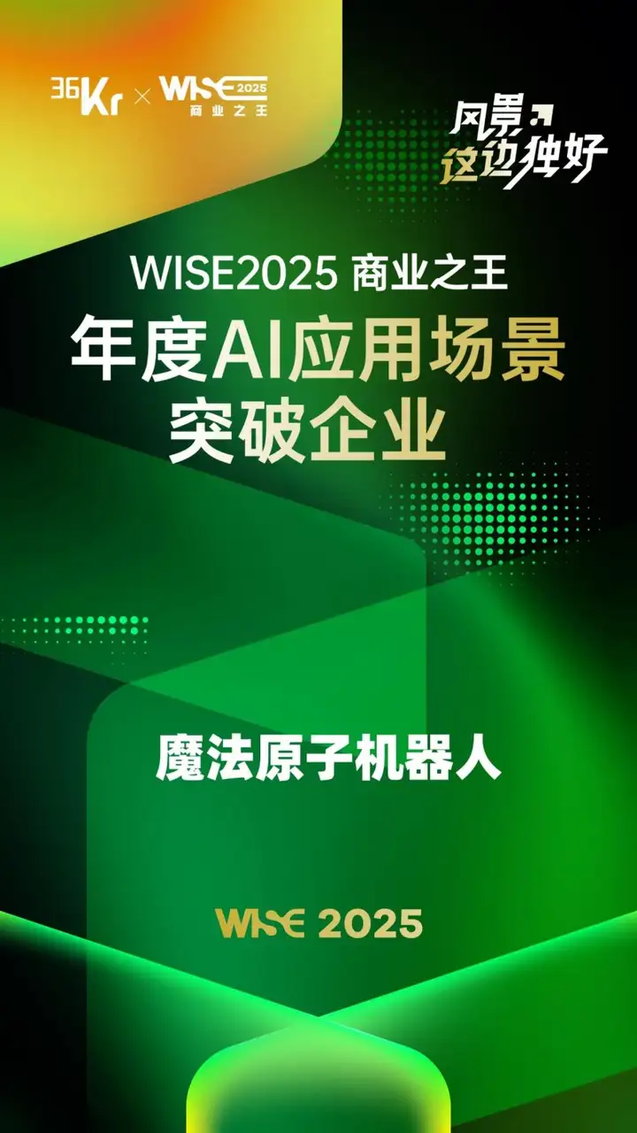 正文:11月27日,36氪WISE2025 商业之王大会在北京举行。全球领先的具身智能公司魔法原子凭借在技术创新、场景落地与全球化布局上的系统化成果,荣获「年度AI应用场景突破企业」。