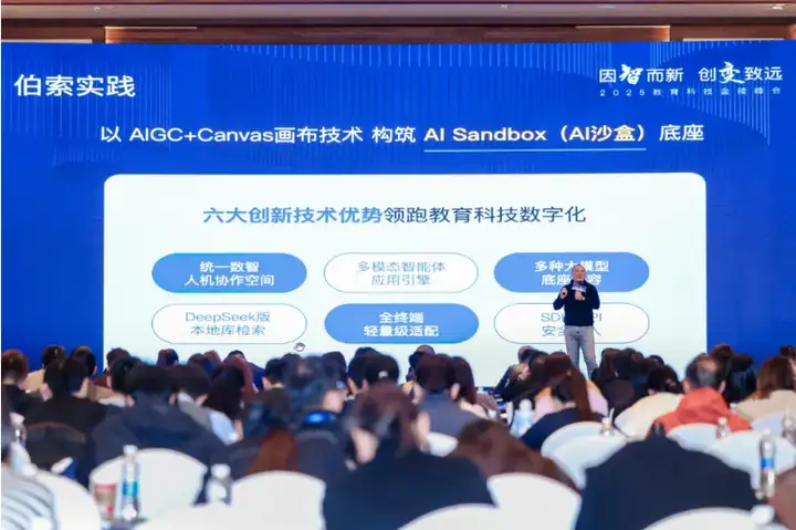 会上,华为云战略总裁、首席战略官崔磊发表了《智启未来 AI驱动教育发展新范式》的主题演讲,系统阐释了华为云在教育数字化与智能化转型中的前沿探索。他指出,2025年是智慧教育元年,AI赋能知识密集型领域并引领教育的第三次革命。华为云长期扎根数智教育,支持智慧教育的创新实践、探索协同育人的全新机制,坚持与教育客户携手并进,建设有人文温度的数智教育。