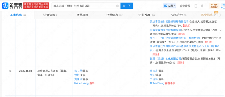 几乎同一时间,业内传出重量级动态:国际知名芯片架构专家Robert Yung显示任睿思芯科副董事长。