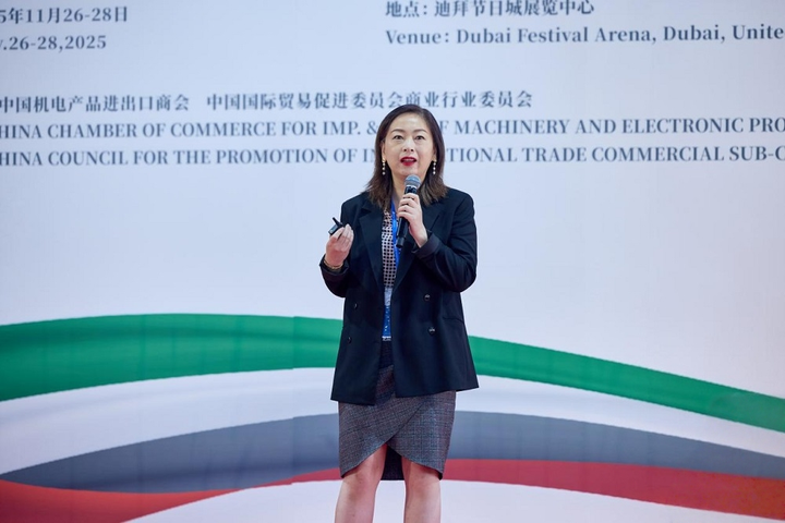 展会现场,中国驻迪拜总领馆总领事欧渤芊及中国机电产品进出口商会副会长刘春一行嘉宾莅临展台参观,与品牌团队进行了亲切交流。
