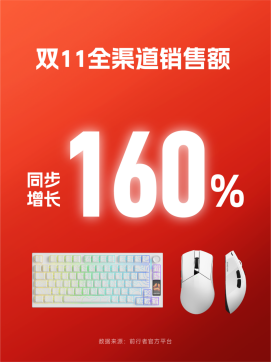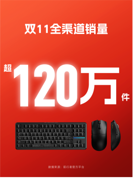 在刚刚结束的“双11”全球购物狂欢中,前行者交出了一份现象级的成绩单。其产品矩阵实现了在抖音、天猫、京东三大核心电商平台的“全域霸榜”。其中,明星爆款X87系列机械键盘表现尤为突出,一举拿下抖音“键盘好评榜TOP1”、天猫“无客制化键盘回购榜第一”及京东“优质体验榜榜首”等多项桂冠。战报显示,前行者全渠道销售额同比飙升160%,销量突破120万件,充分证明了其产品力已获得市场最广泛的认可。