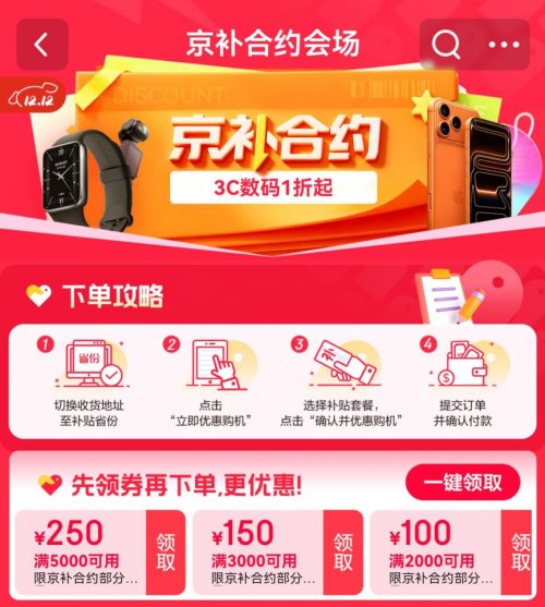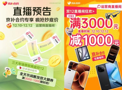 正文:京东12.12已经开启,不少消费者想要换新手机、平板等3C数码产品。可以来京东12.12通过“京补合约”下单,办理指定话费套餐,不仅可享受几百到几千元不等的合约购机补贴,部分地区还可叠加国家补贴,一次入手3C数码好物、新号卡及超值套餐。感兴趣的消费者到京东APP搜索“京补合约”即可进入活动页面,领满5000元减250元、满3000元减150元、满2000元减100元等京补券,12月10日至12日晚8点还可来京东运营商直播间,抢满3000元减1000元大额券,3C数码低至1折起。