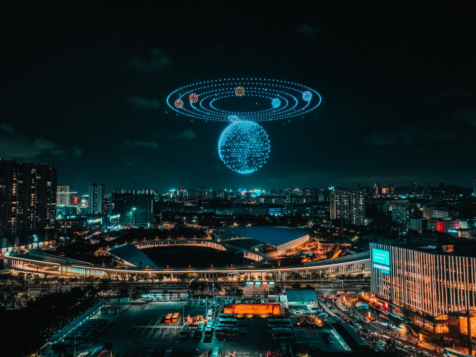 全运会期间,1200架无人机腾空而起,点亮香港维多利亚港的璀璨夜空。剑拔弩张的击剑、风驰电掣的自行车、耐力比拼的铁人三项等运动项目,通过动态光影绘成立体画卷,环保且震撼的“科技烟花”,将全运会的热烈氛围推向高潮。
