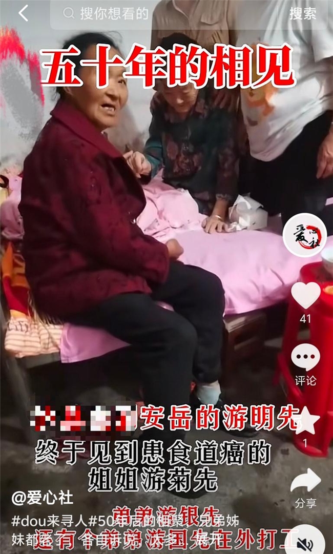 四川阿姨走失50年不知家在何处,抖音寻人不到2小时为其找到家人