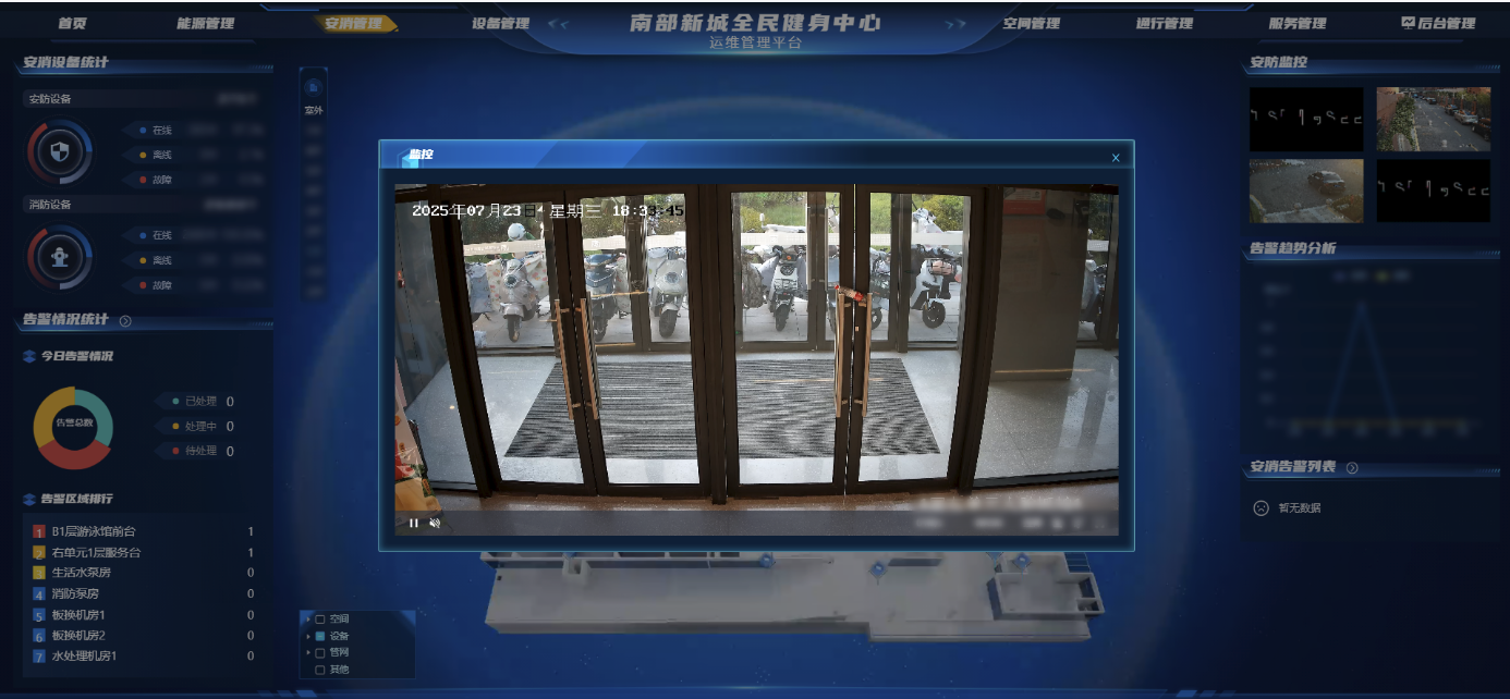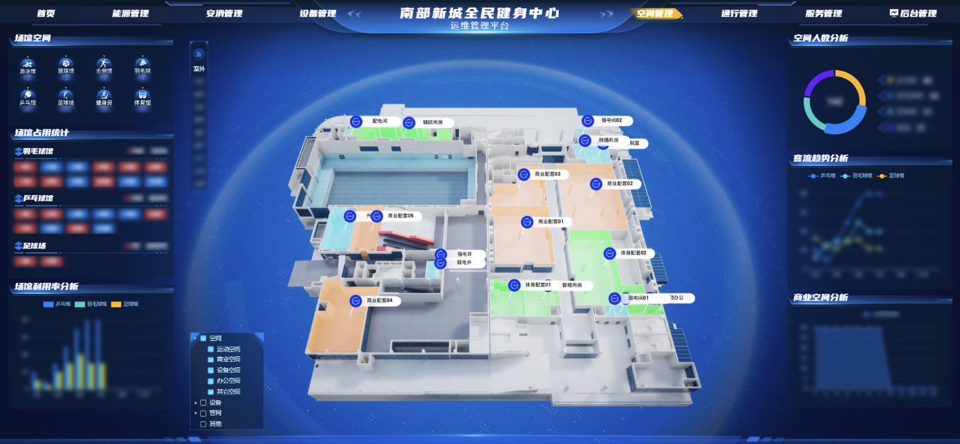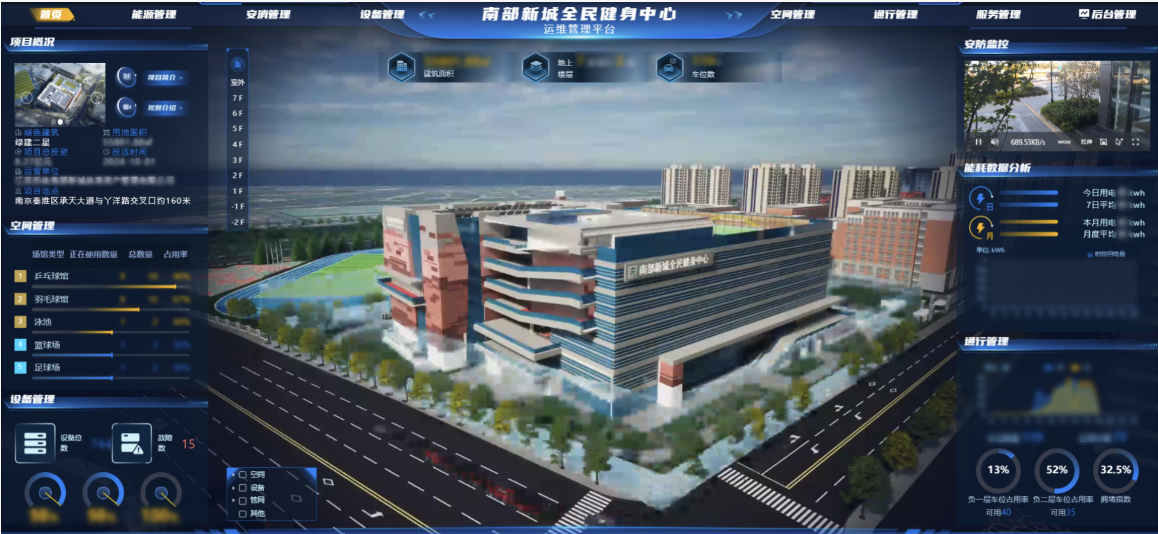 目前,智慧楼宇运维管理平台已经成功整合了南部新城全民健身中心出入口控制系统、车位监测系统、客流监测系统、环境监控系统、智慧照明系统、场馆运营系统等十余类运维子系统,构建驾驶舱、设备管理、环境管理、安防管理、智慧消防等8类应用,还将持续升级以满足南部新城长期智能化发展需求。