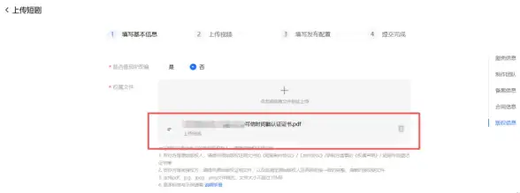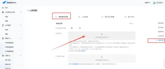 重点步骤:上传短剧/漫剧时的“版权信息”填写