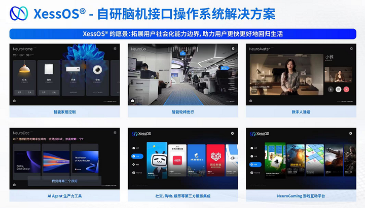 ﹒全功能,以实用为标尺:产品集成脑电采集、脑电处理、无线数据传输、无线能量传输、可充电电池等全部功能,并且基于自研的插件式脑机接口操作系统XessOs,产品展现出强大的开放性与扩展性。它不仅能让患者实现意念操控光标、网页浏览、游戏互动等数字设备,更能无缝连接气囊手套、智能轮椅、智能家居乃至人形机器人等多类物理设备,构建起一个以用户意图为中心的“延伸躯体”生态。