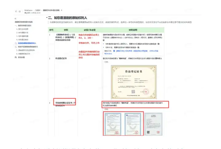作为短剧原始版权方、漫剧原始权利人,上传版权证明文件时,可选择提交以下三类材料之一作为权属证明: