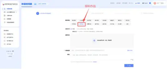 点击【申请时间戳】→ 选择“视听作品”类型;