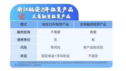 据可靠消息得知,浙江铭安即将发布25年期户用光伏租赁产品,最大程度实现“农户不上征信、不占贷款额度,经销商高收益”,在此模式下,农户仅需提供闲置屋顶,无需贷款,不用资金投入,即可享受0风险的固定和超额收益。