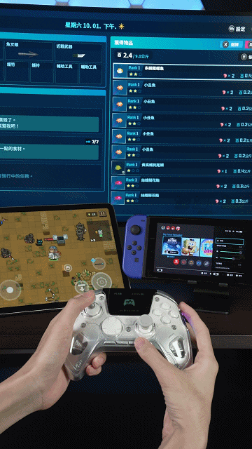 普通手柄想在PC、Switch多个平台上切换真的很麻烦,每次都得在不同的设备上调整一连串设置,还不一定能顺利连上。北通鲲鹏50似乎解决了这个难题,玩家只要打开它的屏幕菜单栏,直接选好你要连的设备,就能一键轻松切换平台。