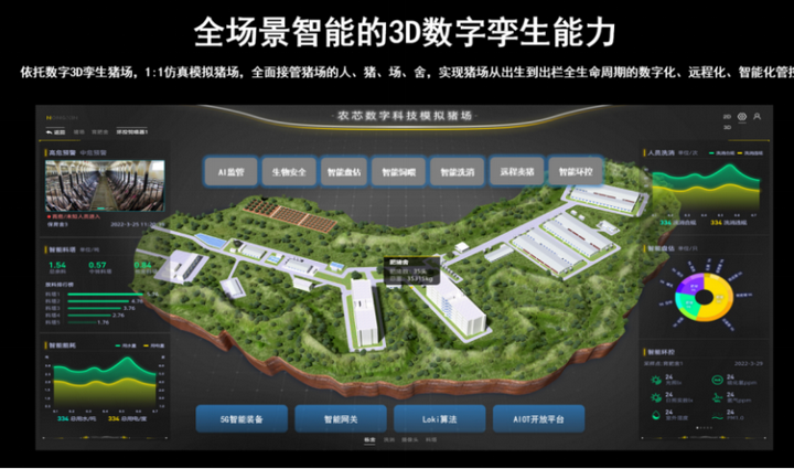 基于软硬智一体化,农信数智实现了全场景智能的3D数字孪生猪场建设,1:1仿真模拟,全面接管猪场的人、猪、场、舍,实现猪场从出生到出栏全生命周期的数字化、远程化、智能化管控。“你点击任何区域,可以链接到猪场的任何设备,任何一头猪,看到它的实时情况。我们希望未来养猪场景不完全局限在猪场里头,而是利用3D数字孪生技术,在千里之外的家里、办公室或在你度假的旅途中操作设备,查看数据,实现远程养猪。”薛素文表示。