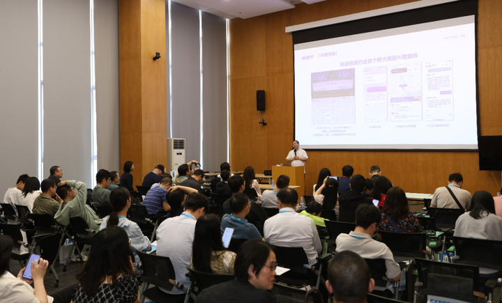 在技术分享环节,快递 100 产研负责人以《快递100在AI+快递物流的实践》 为题,系统回溯了快递 100 在AI大模型领域的探索路径,重点介绍了基于自研的「百递云GPT·大模型应用开发平台」赋能公司“查、寄、管”全线产品进行持续性创新及颠覆式创新的AI原生产品,通过 NLP 自然语言处理、多模态数据融合等核心技术,构建起覆盖物流全链条的智能化解决方案矩阵。基于「AI+Data」的理解,他分享了公司的快递网络图谱、快递时效智能预测、物流状态智能解析、AI智能体等商业化应用的实践。