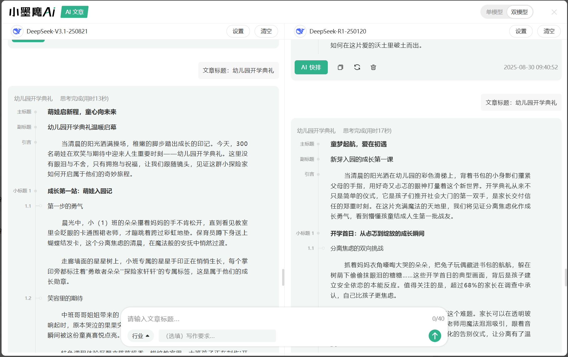 AI文章:一句话生成文案,双模型对抗输出,直接编辑修改,支持自定义生成文章的结构。文章生成完成,一键排版完成,还支持手动更换模板样式。