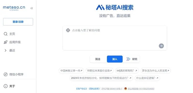 秘塔的AI搜索有三种模式【简洁】【深入】【研究】,最直观地区别就是引用文章数量的不同,【简洁】固定引用10篇,【深入】固定引用20篇,而【研究】则会引用平均100篇+,写的跟学术论文一样,分论点都都给你写在一边了,还可以直接导出pdf和word。