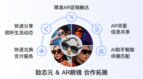 励志元将利用上述这些趋势和特点,与更多企业合作,通过技术优势开发多样化的AR营销场景,如在零售领域,帮助发现最新特惠信息。在旅游领域,提供沉浸式导览、景点AR打卡,AR互动,景点周边商铺可以在引流的同时,选择不同品牌间的异业互助,促销联动,进行更大范围商业活性化,促进游客消费。在社区政务领域,提供包括社区内及周边的信息互助、需求匹配,闲置再利用等。想像一下,消费者只需佩戴 AR 眼镜,即可直观便捷地查看商品信息或服务,不仅能实时浏览促销活动、兑换权益,还能通过眼镜完成快速安全的支付,全程无需掏出手机或钱包,轻松实现“看 - 兑 - 付”一站式购物体验。
