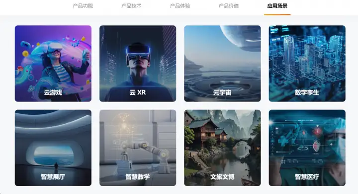 主要应用场景包含云游戏、云XR、元宇宙、数字孪生、智慧展厅、智慧数字、文旅文博、智慧医疗等方面。