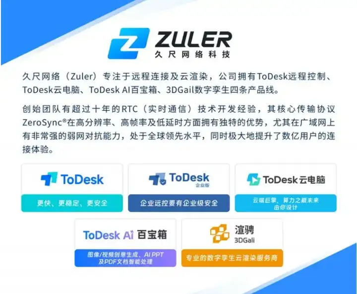 并且通过持续的技术创新和依照市场需求而进行的产品扩展,ToDesk目前已经发展出五大核心产品线,分别是:远程控制个人版、远程控制企业版、云电脑、AI百宝箱以及渲骋云渲染平台;这些产品共同构成了一个完整的远程办公娱乐生态系统,充分满足着不同用户场景下的多样化需求!