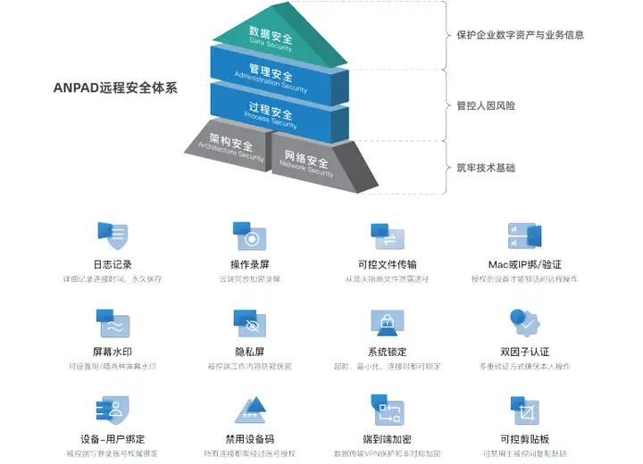 安全性能方面,企业版提供了多种安全防护措施,包括详细的连接日志记录、云录屏功能、细化的文件传输记录、明/暗水印保护功能以及系统锁定等23项保障措施。每一次连接的发起人、连接对象、起止时间、文件传输等信息都会被详细记录,便于审计和回查,可以说是为企业的运维人员、设计师、数据分析师等专业人士提供时时刻刻的生产力保障。