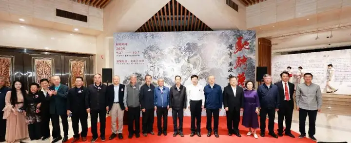 中国画院名誉院长、中国首席大检察官、最高人民检察院原检察长贾春旺;中共中央党校原常务副校长、全国人大社会建设委员会主任何毅亭;中国画院创院理事长、北京市原副市长胡昭广;天津市原政法委书记散襄军;中国画院原党委书记、北京市国有资产监督管理委员会原副主任白金荣;中国国际文化交流中心理事、中国画院理事长乔雨;中国画院副理事长,甘肃省人大教科文卫委员会原主任委员庞波;紫荆文化集团有限公司党委副书记、总经理文宏武;中央电视台原副总编辑、第十一届全国文联副主席朱彤;华为技术有限公司原财务总监、董事任正黎女士;中国人民大学法学院、国家一级教授、中国法学学会会长陈卫东;中建国际集团有限公司总裁王晓光;中国国际文化交流中心事业发展部主任芦占辉;中国画院执行院长兆学军;中华网董事长任杭中;著名书法家刘浩然;上海陈佩秋公益基金会理事长庞沐兰(女士);陕西省国税稽查局原局长张甲虎;北京JW万豪酒店集团有限公司董事长陈彬等领导和嘉宾出席了开幕仪式。