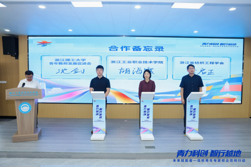 活动现场,浙江理工大学青年教师发展促进会、浙江省纺织工程学会与浙江工业职业技术学院共同签署合作备忘录,三方明确,将围绕绍兴纺织、装备制造等优势产业链,在科研协同、人才共育、实践基地共建等领域深化合作,重点为产业链关键环节的企业提供技术资源对接,推动创新要素向企业一线下沉;同时为广大科技工作者搭建实践平台,让高校科研人员深入产业场景开展服务。