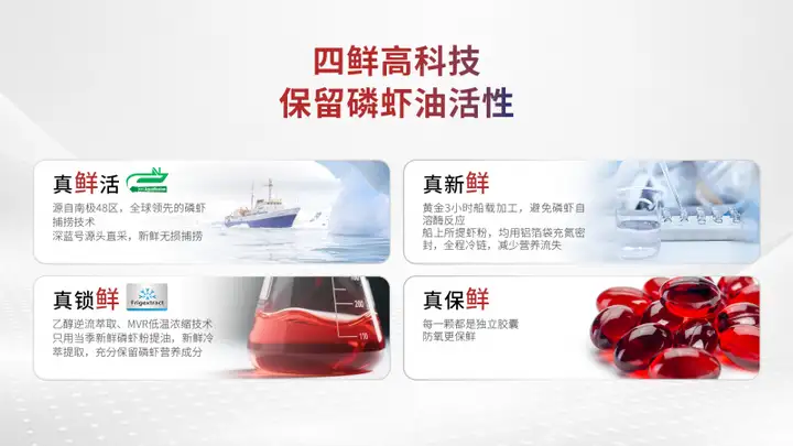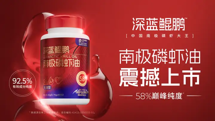 而优质品牌会有专属捕捞加工保障,比如深蓝鲲鹏就在包装上明确标注“磷虾油原料由深蓝号远洋渔船南极捕捞、海上加工”。“深蓝号”作为国内首艘专业磷虾捕捞加工船,还是南极科考 “国家队”,能在南极海域直采鲜活磷虾后,1-3小时内船上完成初加工,从源头锁住新鲜与营养,避免中转损耗。
