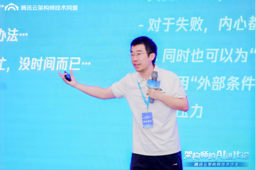 腾讯云架构师技术同盟学习交流主席 沈剑带来《超越焦虑,重塑AI时代架构师的核心竞争力》的主题演讲。