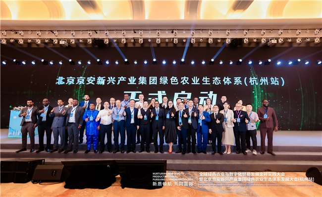 10月10日,由全球商贸联盟与北京京安新兴产业集团联合主办的“新质领航 共同富裕 全球绿色农业与数字化贸易发展金砖实践大会暨北京京安新兴产业集团绿色农业生态体系发展大会(杭州站)”在杭州隆重举行。