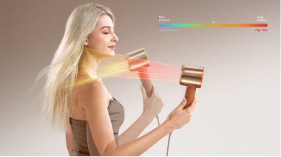 另外,在智能安全设计上,追觅亦将人文关怀贯彻到底,为了防止局部过热烫坏、烫伤头皮,X30搭载了追觅首创的AI智感动态风温调控技术,用户在吹发时,出风口中央的TOF测距温控模块能实时“感知”与头皮、发丝的距离,风温会跟着距离自动调整;更直观的是,后盖环形光环会用色彩渐变告诉你风温变化,再也不用担心局部过热伤头皮。