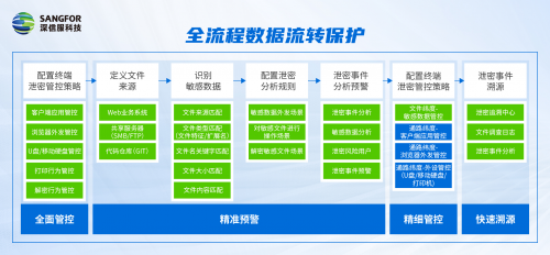 要解决数据泄密问题,其次,要看清数据流转情况,全流程追踪和分析泄密行为,并针对不同业务场景、不同密级数据,制定分层分级的事中管控手段。