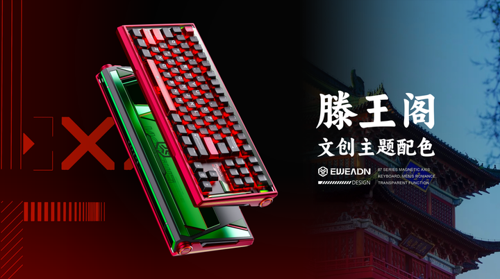 3、文化层面,与虚拟歌姬洛天依联名推出X87键盘,并打造EX01滕王阁联名款,使产品成为连接用户情感的 “信仰符号”。