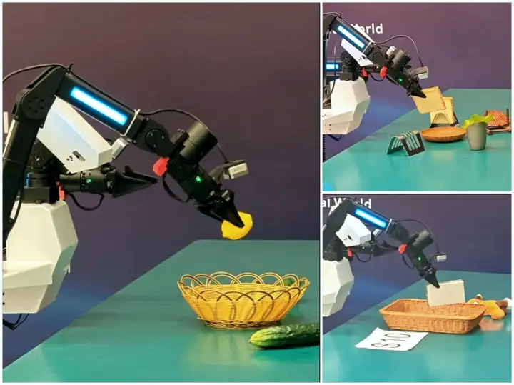 比赛中要求参赛机器人在开放场景中听懂自然语言指令,完成抓取、分类、堆叠等复杂操作。这一看似简单的任务,实则暗藏具身智能的两大 “死亡陷阱”:一是仿真到真机的“水土不服”,众多团队因模型部署失败、执行卡顿而中途弃赛;二是泛化能力不足,面对未公开的物体类型与随机摆放的位置,机器人常出现“看不懂指令”“抓不准位置”的情况。