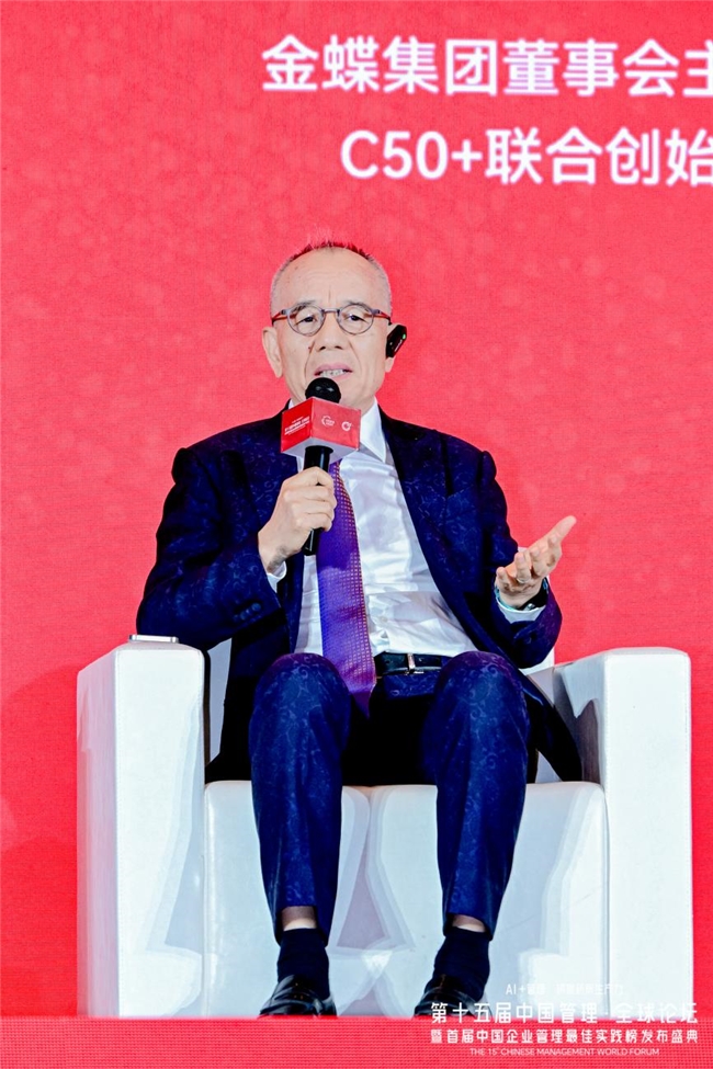 本次论坛现场,著名数字战略家、“云经济学”之父乔·韦曼发表了题为《新动能 新未来:AI时代的商业法则》的分享,并在香港中文大学商学院副院长、终身教授、C50+联席秘书长马旭飞的主持下,与上海创智组织管理数字技术研究院院长、C50+联合创始发起人陈春花,金蝶集团董事会主席兼CEO、C50+联合创始发起人徐少春,围绕“AI时代的商业组织:趋势与应对”展开了一场横跨东西方管理智慧的巅峰对话,共同探讨了AI与企业融合的路径、管理者如何应对AI时代的商业变革与组织重塑等话题。