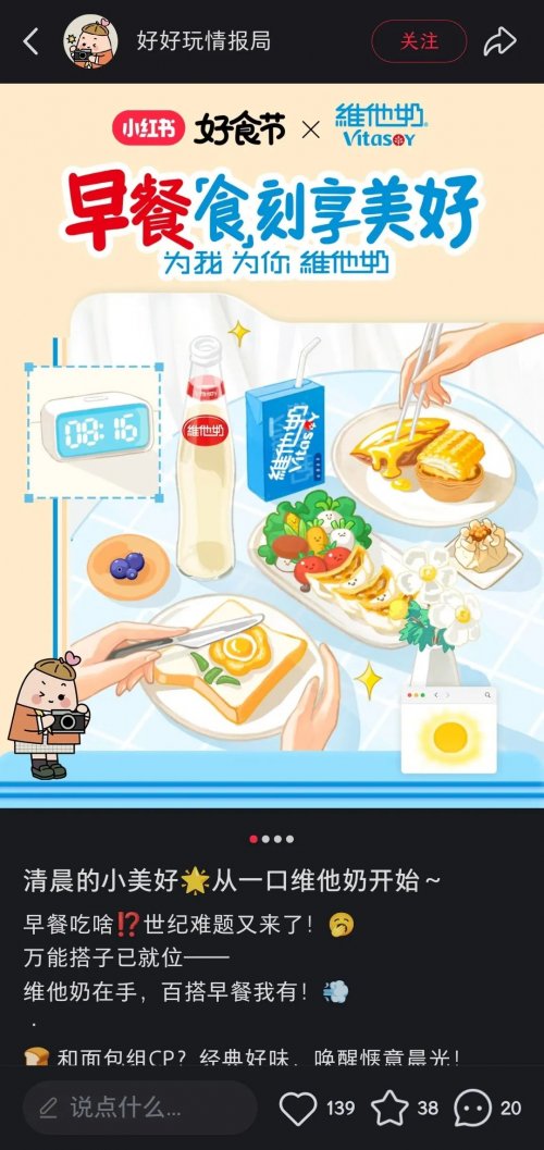 维他奶的“早餐「食」刻享美好”营销,本质上是一场情感价值的投资。它没有陷入功能内卷的泥潭,而是选择走进用户的生活肌理,成为他们早餐时刻里的“美好见证者”。这种投资让维他奶在用户心智中占据了不可替代的位置,为品牌的长远发展奠定了坚实基础。