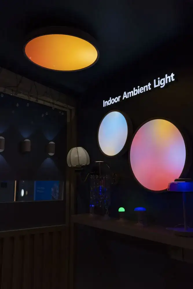 紧扣秋灯展主题,博联的智能照明展区成为又一关注热点。创新设计的音乐律动控制盒内置高灵敏度拾音器,可实时拾取环境音乐并同步驱动灯带、灯串、地插灯等各类灯具,无需与音源繁琐绑定,即可实现"光随音动"的沉浸体验。同时,具备“日出唤醒”、“星河漫游”等多种光影模式的智能吸顶灯,进一步丰富了家居光环境的选择,用户能够根据心情、时段或场景灵活调节空间氛围,大大提升照明体验。