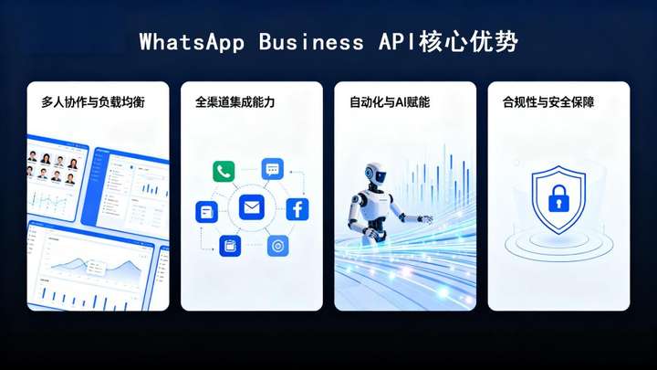 WhatsApp Business API(企业级接口):专为中大型企业设计,支持系统集成、多客服协作、自动化流程和高并发处理,是唯一可接入客服系统的官方接口。