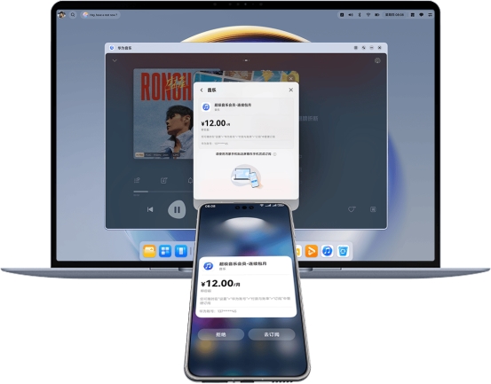 不过,这次HarmonyOS 6带来了全新PC支付体验。在搭载新系统的鸿蒙PC上,当你在WPS、宝宝巴士等应用中发起购买或订阅时,只需掏出同样升级至HarmonyOS 6的手机,对着屏幕的感应区域“碰一碰”,支付请求就能流转到手机上。手机自动拉起支付界面后,用户仅需验证面容或指纹即可完成付款。这个过程彻底告别了“扫码”这一多余步骤,真正实现了将PC端大屏操作与手机端便捷支付“丝滑连招”。它精准捕捉了用户在办公、亲子教育等场景下的核心痛点,让跨设备支付变得前所未有的高效、顺畅。