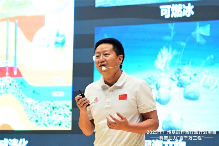 为让大家深入了解可燃冰,陈宗恒副所长详细拆解了这一深海宝藏。他介绍道,可燃冰学名为“天然气水合物”,是甲烷气体分子与水分子在低温高压的特定条件下,在海底形成的类冰状固态结晶物质。它因外观似冰、遇火可燃而得名,而深海海底的冷泉、泥火山等甲烷渗漏区,正是其形成的理想环境。