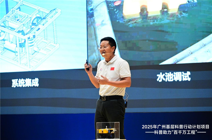 2025年11月3日下午,2025年广州基层科普行动计划项目——“科普助力‘百千万工程’”暨新质生产力“水下机器人”专场活动在广州市南沙区湾区实验学校顺利举行。本期活动以“智探深蓝”为主题,特邀广州海洋地质调查局海洋技术方法研究所副所长、教授级高级工程师陈宗恒担任主讲嘉宾,中科智城国际合作总裁朱奕璇女士担任主持,现场吸引了400余名师生沉浸式参与。同时,活动通过广东科技报、南方+、南沙科普和中科智城视频号全网直播,线上累计总播放量超11万人次,引发社会各界对海洋新科技的热烈讨论与广泛关注。