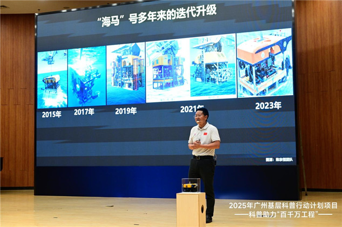 以“海马”号为范例,陈宗恒副所长系统讲述了我国深海探测技术的发展历程与重大突破。“海马”号作为我国首套4500米级深海遥控潜水器,国产化率高达90%,实现关键技术完全自主可控。它不仅在南海1522米深处的冷泉区成功采集可燃冰,也为十五运会和残特奥会带去了来自深海的“源火”。