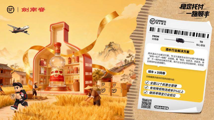 作为名酒市场的核心领导品牌,剑南春在物流运输和渠道管理环节面临多重挑战。顺丰通过数字化系统实现对商品流向的精准管控,有效抑制窜货;整合线上线下资源,提升履约时效,并通过专业包装降低破损风险。剑南春与顺丰的合作保障了旺季服务品质,为白酒行业的数字化与体验升级奠定基础。