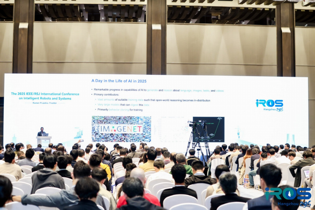 在五天的会议日程中,大会开展了3场重磅全会报告(Plenary Sessions)。北京大学朱松纯教授以《TongBrain: Bridging Physical Robots and AGI Agents》为主题,解析通用智能与机器人融合的未来路径;苏黎世联邦大学 Marco Hutter 教授聚焦《The New Era of Mobility: Humanoids and Quadrupeds Enter the Real World》,探讨仿生机器人的场景落地突破;首尔国立大学 Hyoun JIN Kim 教授则以《Autonomous Aerial Manipulation: Toward Physically Intelligent Robots in Flight》为题,深挖空中机器人的技术边界。