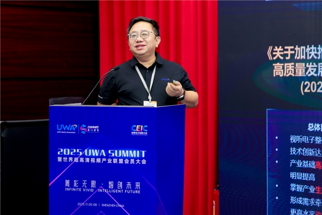 世界超高清视频产业发展联盟副秘书长焦洋在题为“道合声远 共创菁彩——超高清产业生态发展迈入新阶段”的发言中指出,超高清产业生态迈入新阶段,技术升级带来视听体验“质的飞跃”。AI与AIGC深度重构产业链,提升内容质量与效率。双Vivid国产标准实现端到端贯通,获国际认可并规模化应用于电视、车载、影院等场景。2025年为超高清发展年,各地出台多项政策推动超高清产业发展。预计2030年产业规模达7.8万亿,UWA联盟持续推进场景创新与国际合作,共建菁彩视听未来。