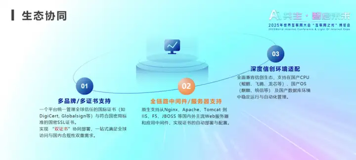 落幕时,窗外雨势转弱,雨丝仍在乌镇夜色中飘洒,晕染场外灯火。这座千年水乡正见证数字信任体系的革命。天威诚信以“全链路智能化SSL证书生态引擎”回应时代挑战,当证书管理进入“秒级”时代,企业需让安全从“手动挡”转变为“自动驾驶”,才能在数字世界行稳致远。